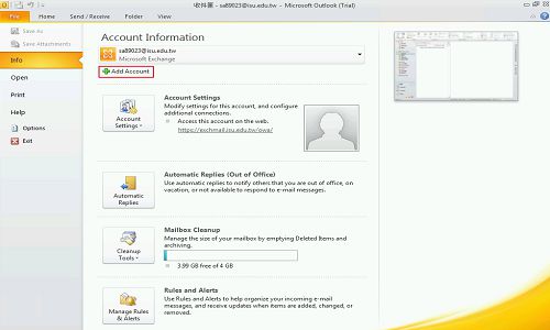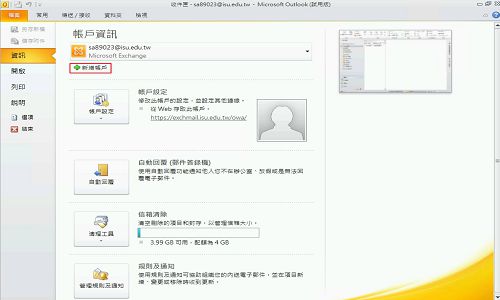 | 先使用Outlook軟體自動設定新版帳戶,步驟請參考Outlook 2010設定或Outlook 2007設定。 | Use Outlook to create the Exchange account for Outlook 2010 or Outlook 2007. | ||
