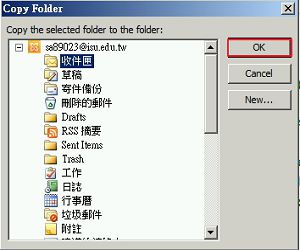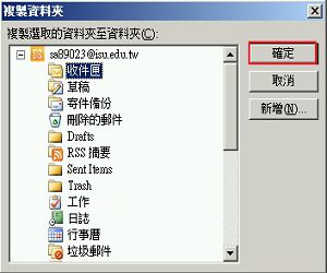 | 選擇複製目的地資料夾,並點[確定]。 ※教職員電郵帳戶及雲端電郵帳戶都要做這個操作。 | Select the copy destination folder and click "OK". ※The operation are done both the Faculty email account and the cloud email account. |