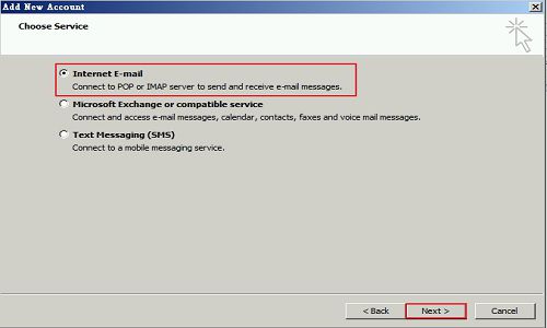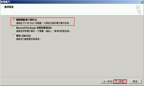 | 選擇[網際網路電子郵件],並點[下一步]。 | Check "Internet E-mail" and click "Next". | ||