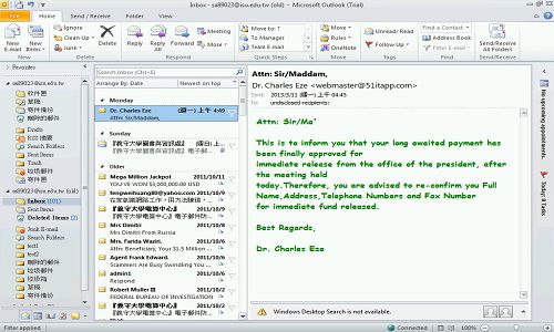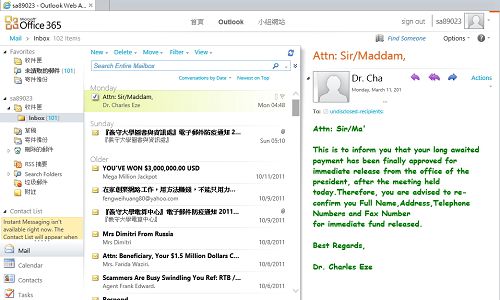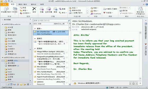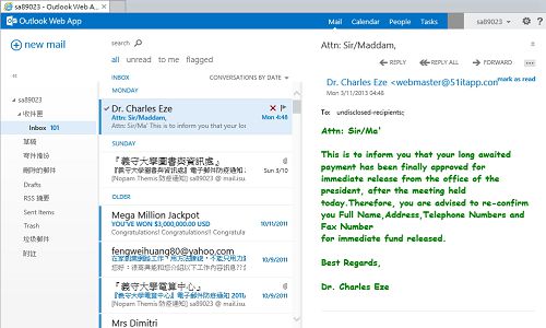 | 舊電郵系統的信件。 | The mails in old email system. | ||